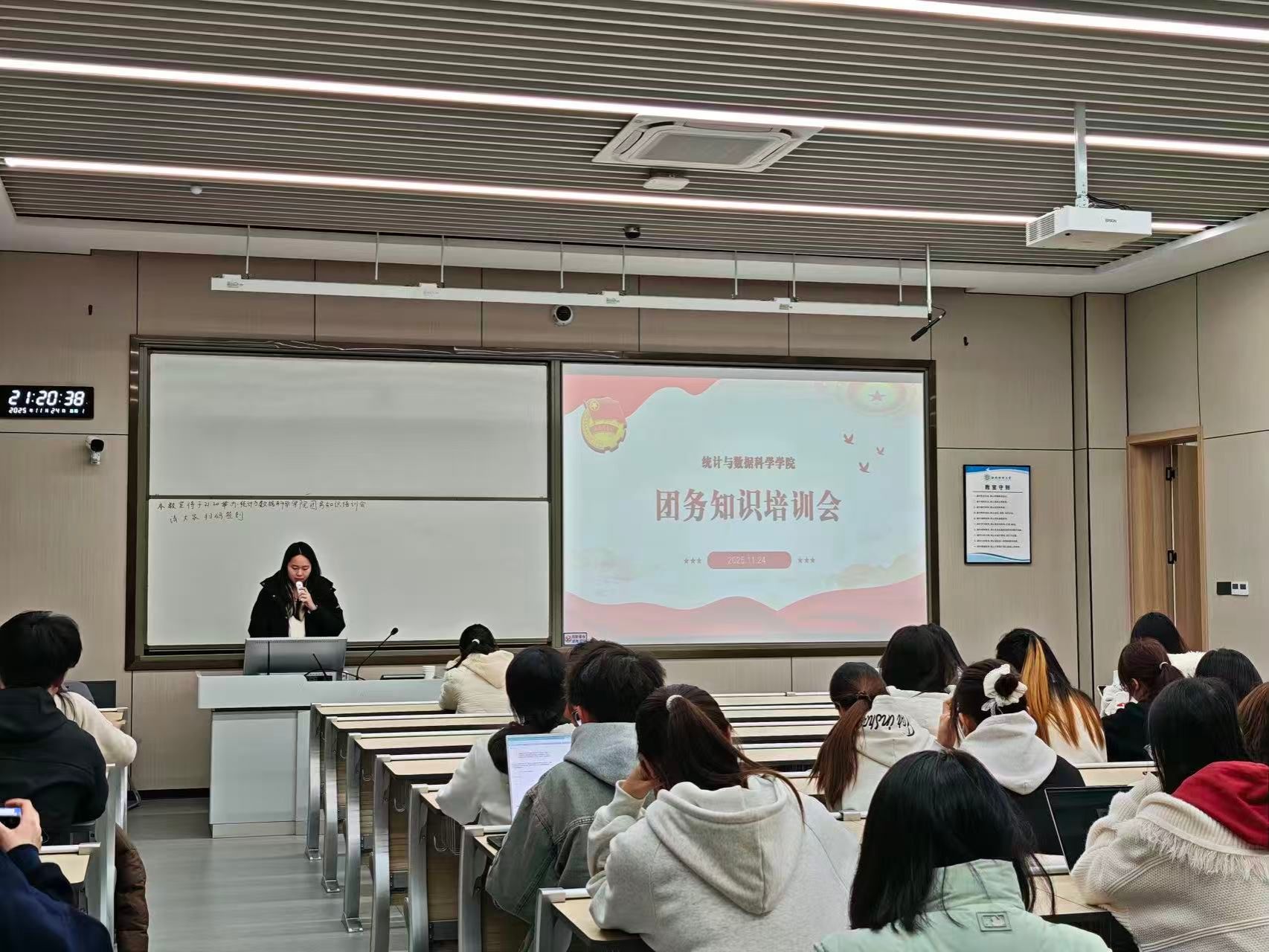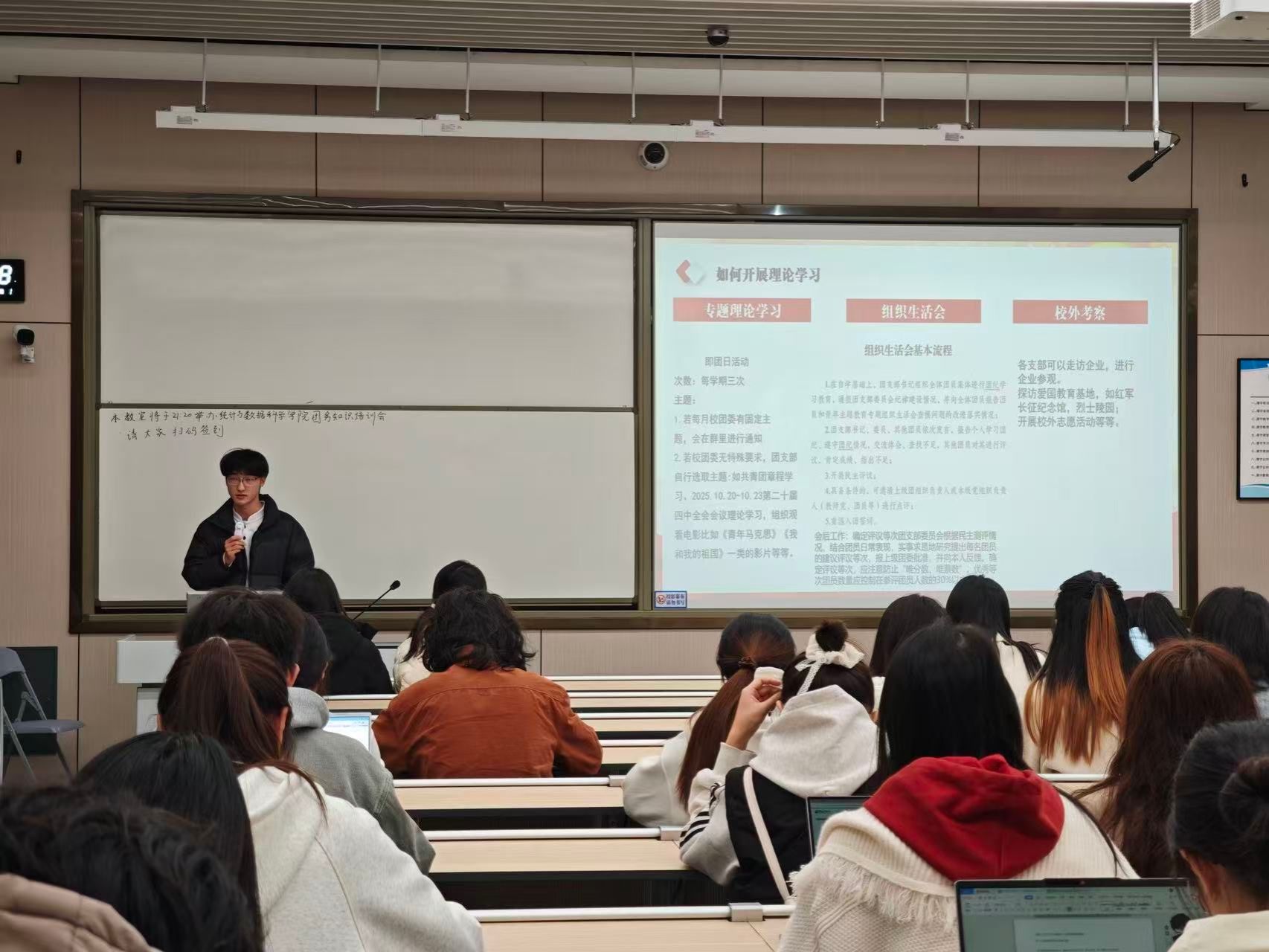 团学组织部于2025年11月24日在颐德楼H208举办团务知识专题培训会,各班级团支部书记、组织委员及宣传委员共80余人参加培训。