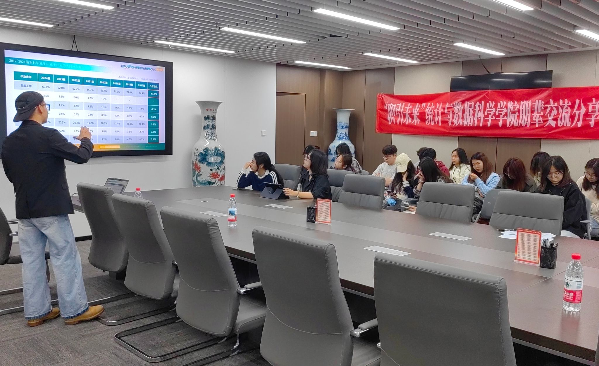 交流会还邀请到了新东方大学生学习与发展中心的讲师,他围绕考研价值、发展前景、政策要点展开讲解,解读国家线、自主划线等关键信息,并结合91色情